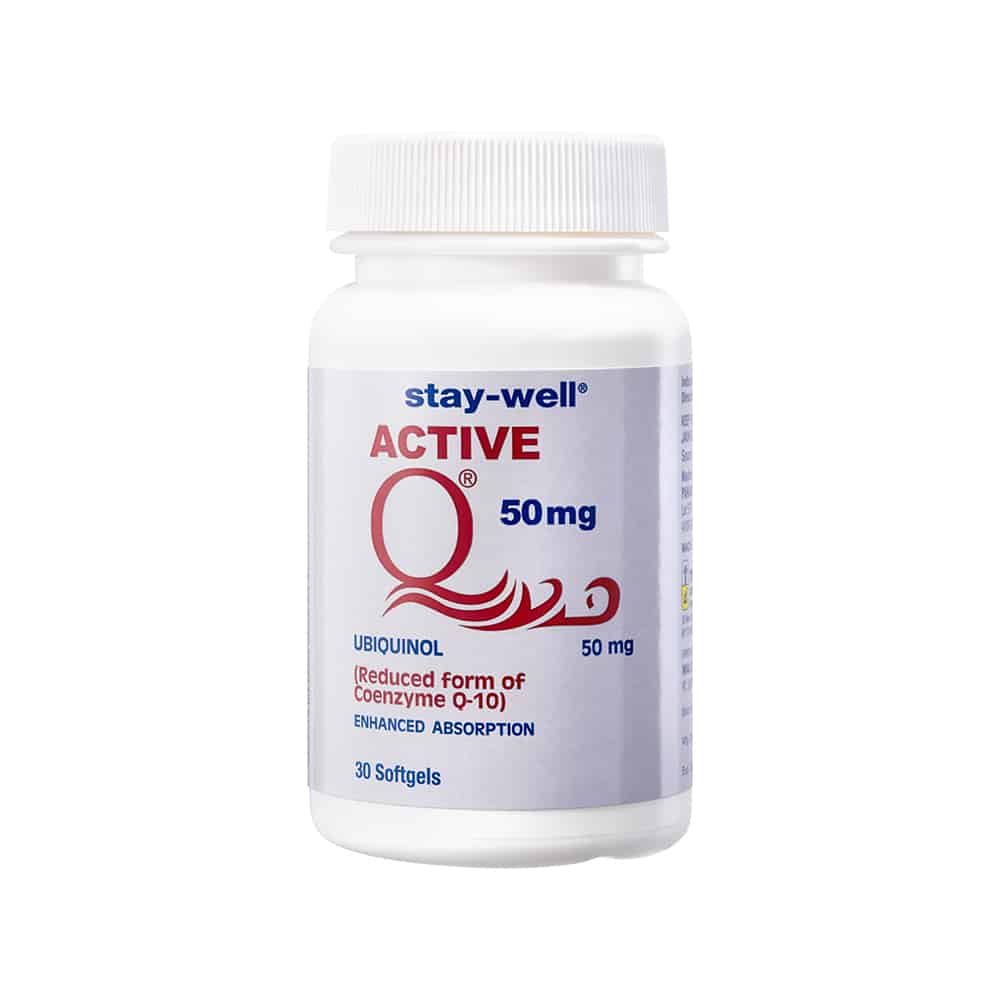 | Stay-well Active-Q 50 mg | Ubiquinol (Reduced form of Coenzyme Q-10) | 50 mg |