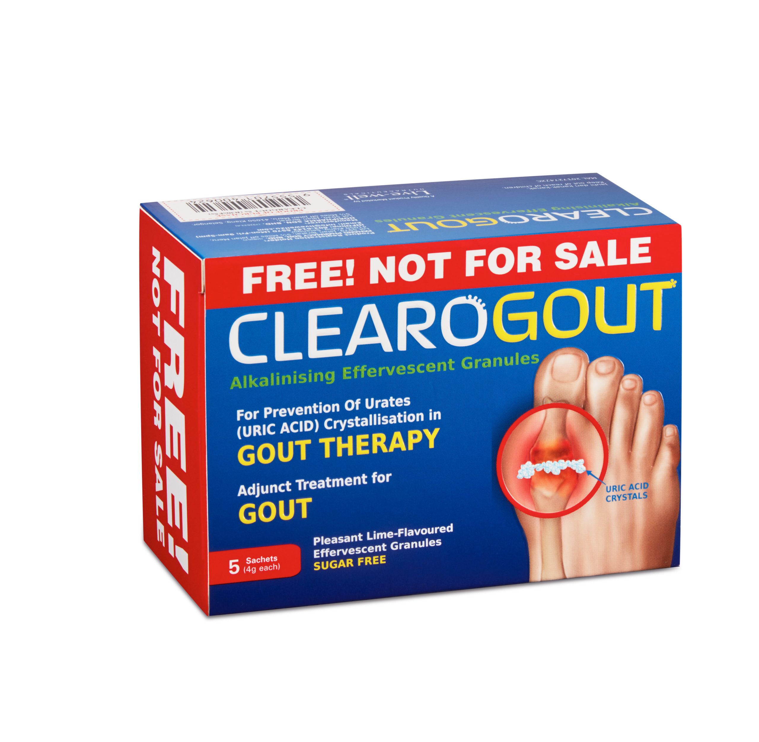 If your quality of life has been negatively impacted by gout pain all this while, you can rest easy now. Clearogout is the uric acid neutralizer solution to all your gout problems! It works! Clearogout contains alkanising effervescent granules by breaking up the accumulated uric acid crystals in your joints. Also, Clearogout is free of any sugar or artificial sweeteners like aspartame and saccharin etc.